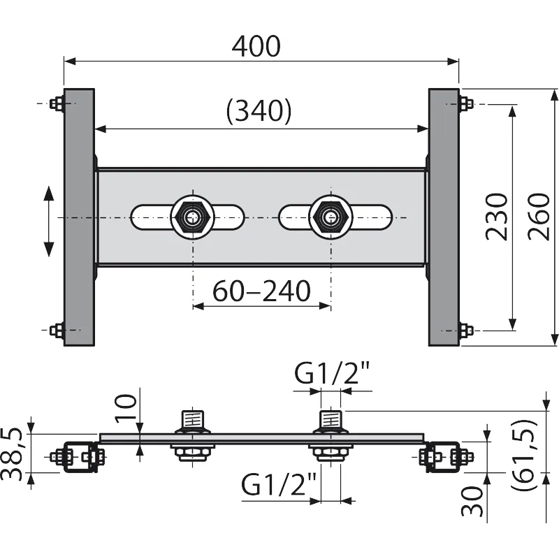A keret az EN 200 szabványnak megfelelően készült, biztosítva ezzel a hosszú távú stabilitást és megbízhatóságot. Az állítható magasságú kereszttartó segítségével a szerelvények rögzítése 60–240 mm tartományban történhet, lehetővé téve a rugalmas alkalmazást különböző falvastagságok esetén.