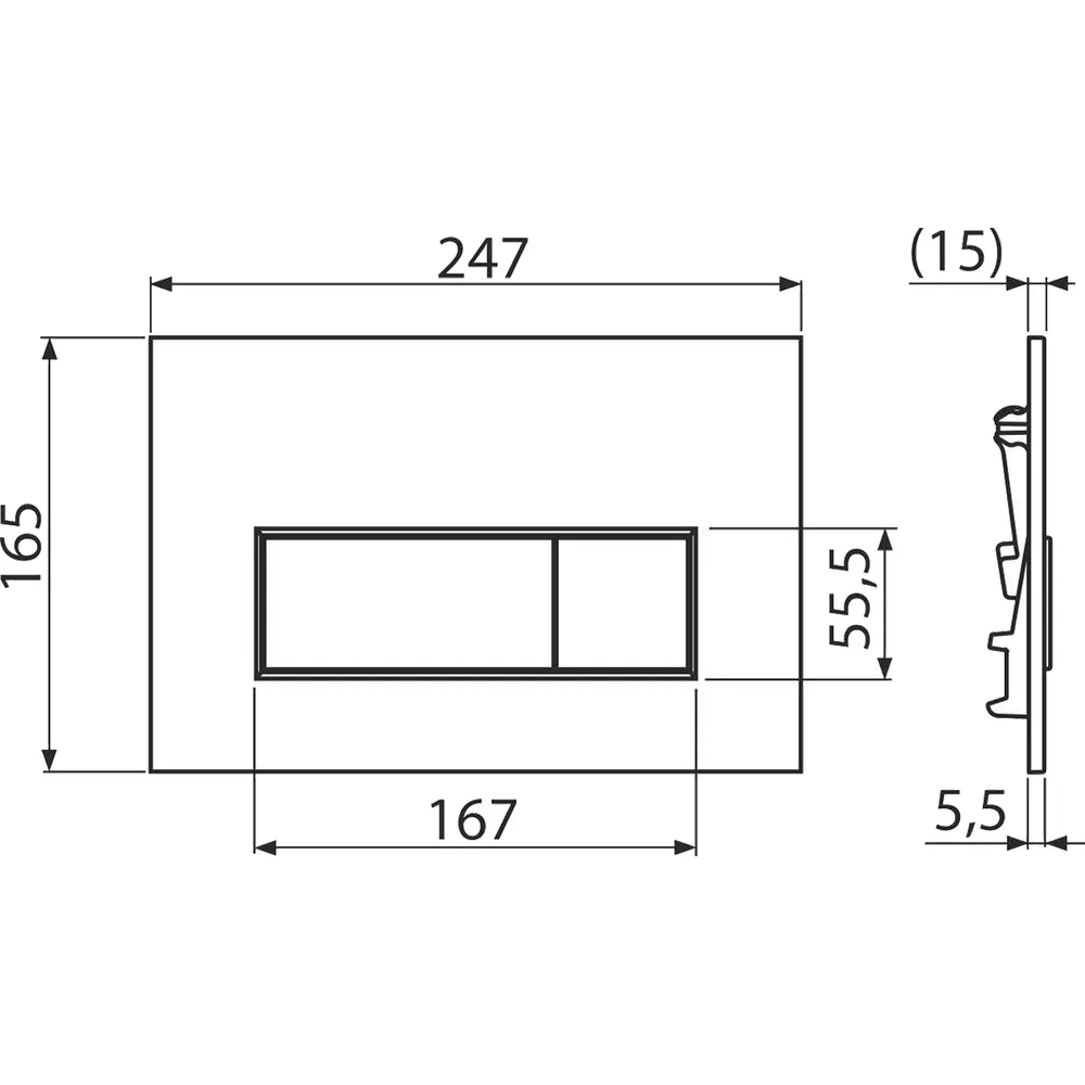 Ez a nyomólap ideális választás falba építhető WC tartályokhoz és falsík alatti szerelési rendszerekhez. A termék jellemzője, hogy minimálisan 5,5 mm-re emelkedik ki a burkolat fölé, így esztétikus megjelenést biztosít a fürdőszobájában.