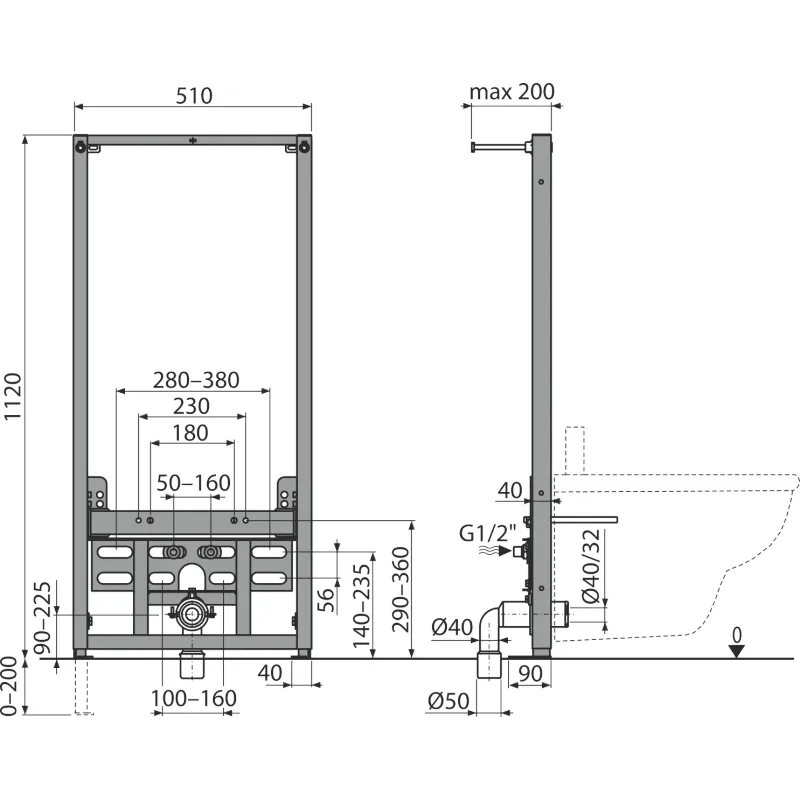Alcaplast Szerelőkeret Bidéhez – 1,12 m