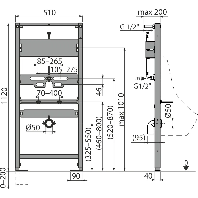 Alcaplast Szerelőkeret piszoárhoz és érzékelőhöz – magasság 1,12 m