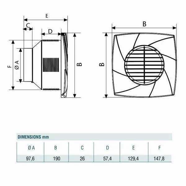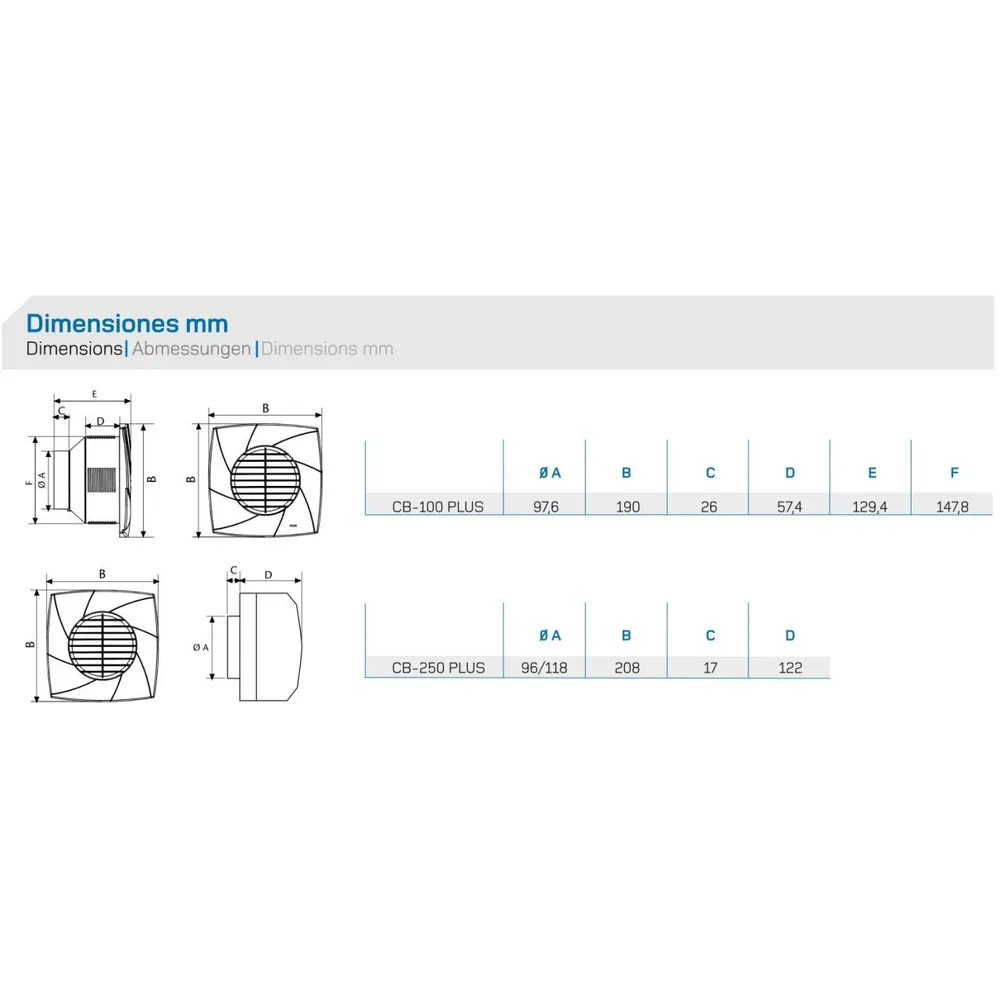 A Cata CB 100 PLUS nagyhatékonyságú, radiális kialakítású járókereke lehetővé teszi a hosszabb csőszakaszok átszellőztetését is, így tökéletes választás nagyobb helységek szellőztetésére is. A ventilátor 100 mm-es átmérővel és 130 m3/h maximális légszállítással rendelkezik, ami ideálissá teszi maximum 40 m3-ig terjedő helységekhez.