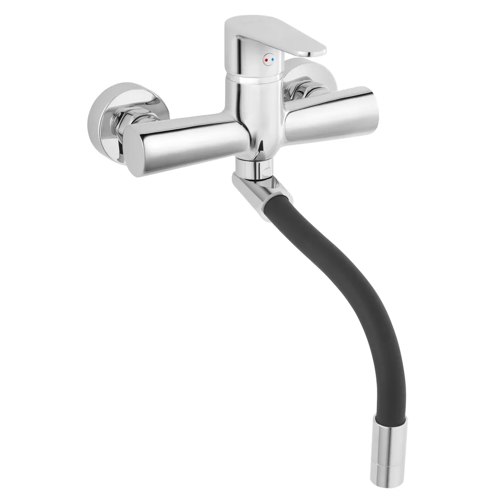 Modern és praktikus fali konyhai csaptelep, flexibilis kifolyócsővel és kerámia szabályozó betéttel.