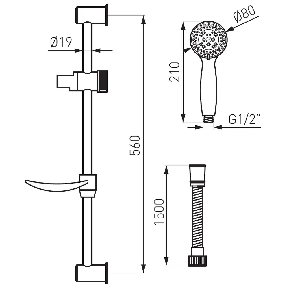 - Kézizuhany átmérő: 80 mm-es kézizuhany biztosítja a bőséges vízáramot és a kényelmes használatot.