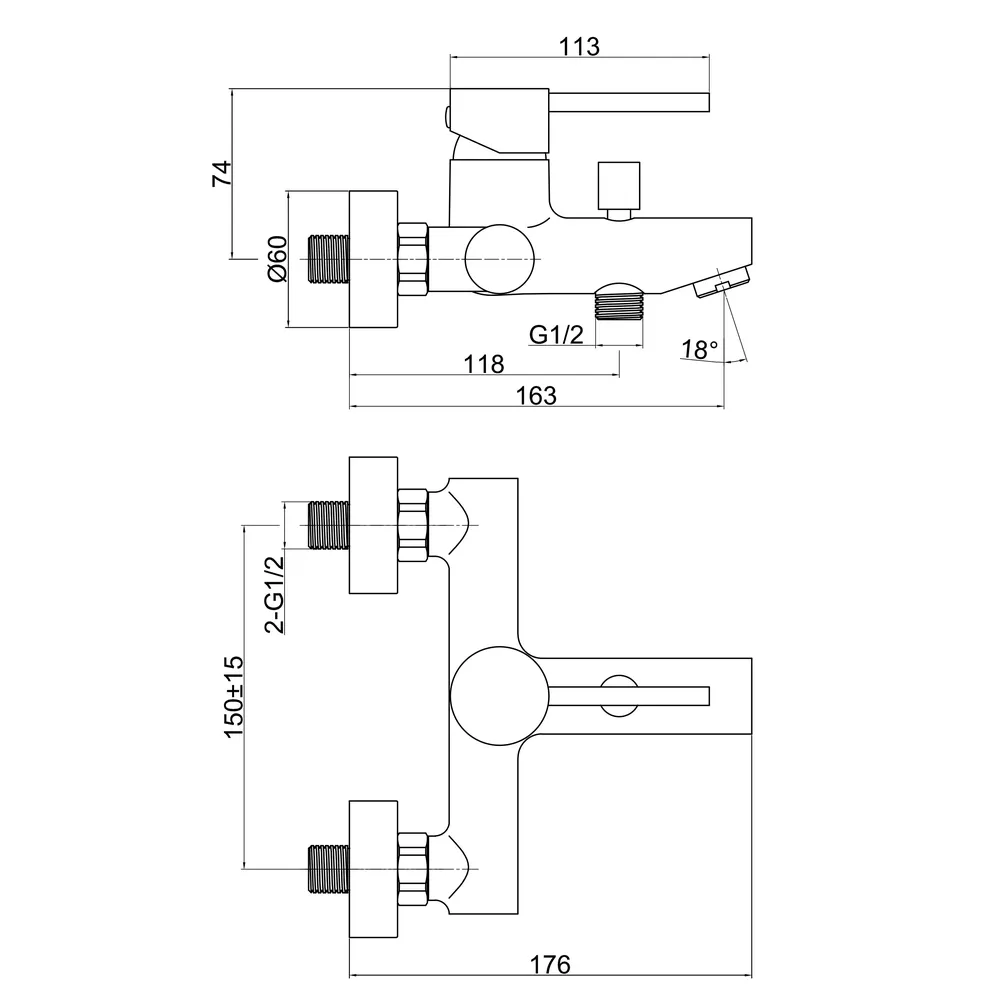 - Kiállások közötti távolság: 150 ± 20 mm – könnyen telepíthető különböző fürdőszobai elrendezésekhez.