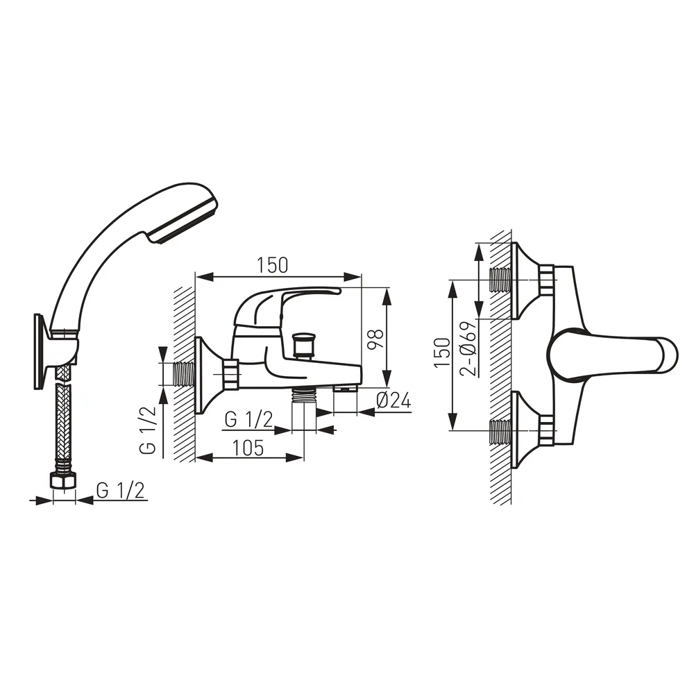 - Fali tartós zuhanyszett: A tartós fali szerelés garantálja a biztonságos és tartós működést.