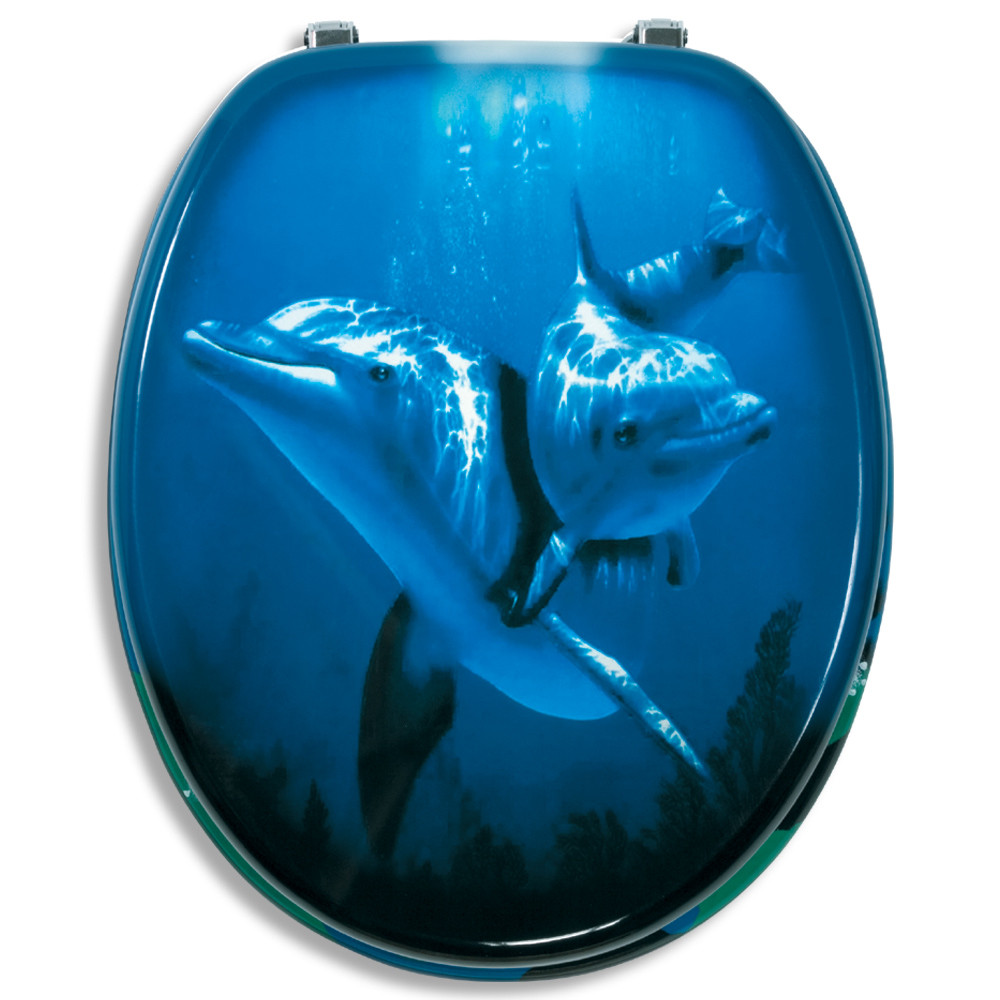 Delfin mintás lakkozott MDF WC ülőke krómozott réz rögzítőelemekkel.