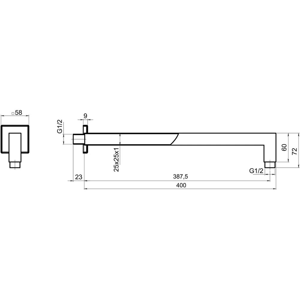 Falra szerelhető kromozott zuhanykar, 400 mm hosszúsággal, szögletes kialakítással és 1/2” csatlakozással.