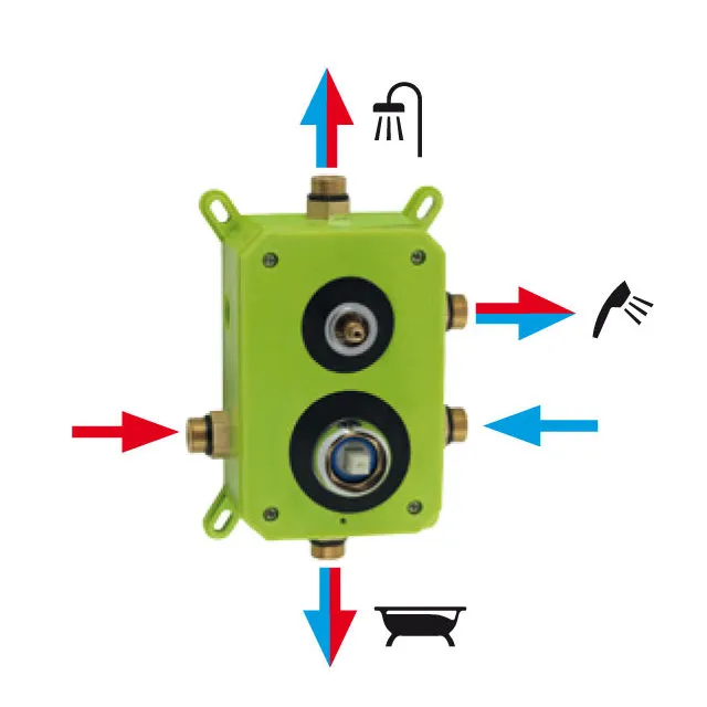Falba építhető csaptelep, amely egyszerre köthető a kádhoz, kézi zuhanyhoz és fejzuhanyhoz.