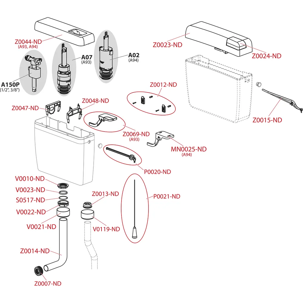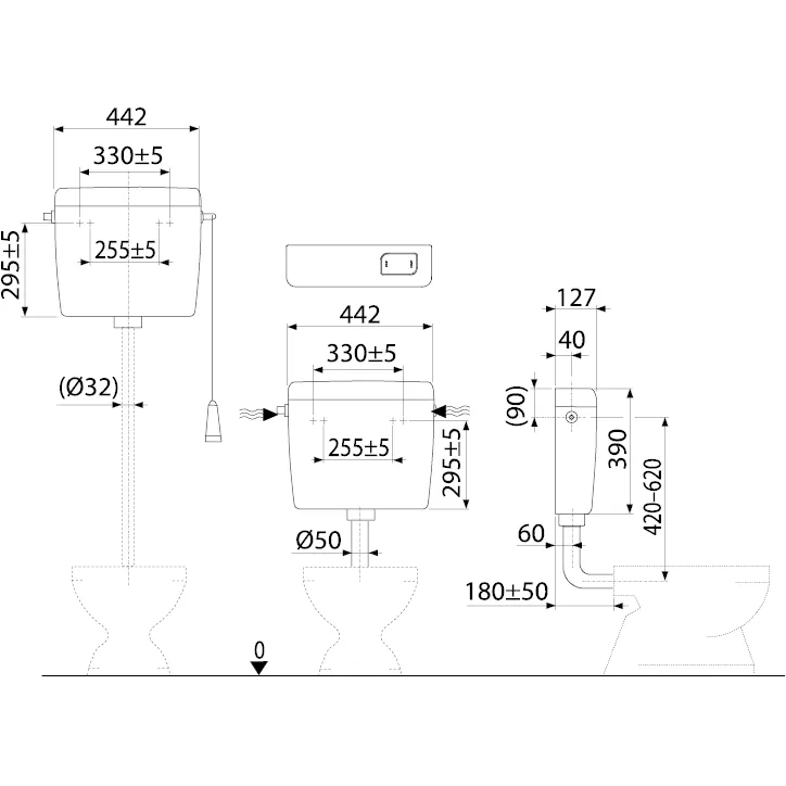 - Öblítő készlet alacsonyan elhelyezett tartályhoz (nyomógomb)